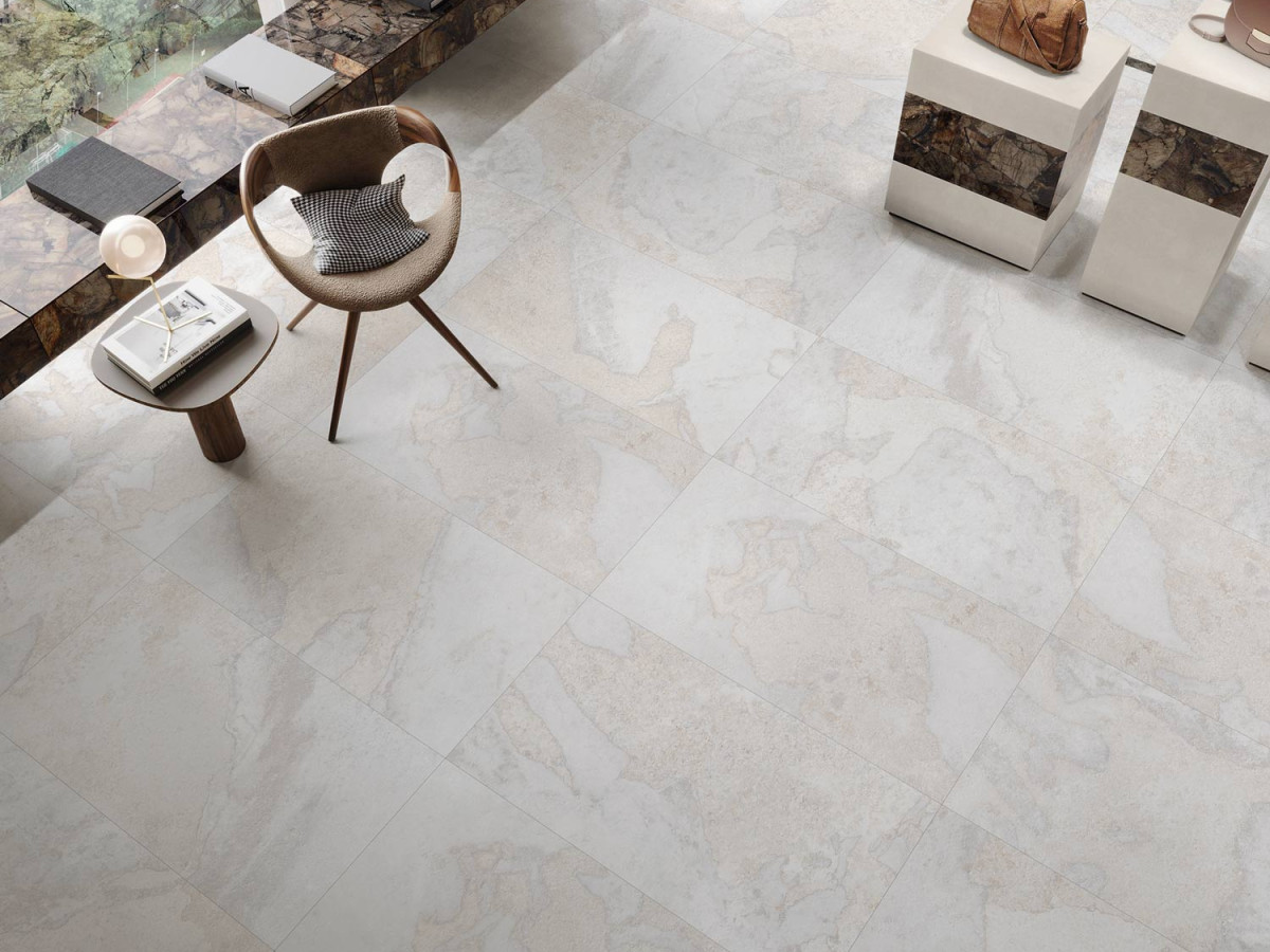 Además, al tratarse de superficies porcelánicas, este tipo de baldosas pueden instalarse en cualquier estancia interior más allá de dormitorios y salones. Su resistencia a los golpes y cambios de temperatura y su nula porosidad les permite tener cabida en espacios exigentes como el baño y la cocina o en proyectos de arquitectura comercial.