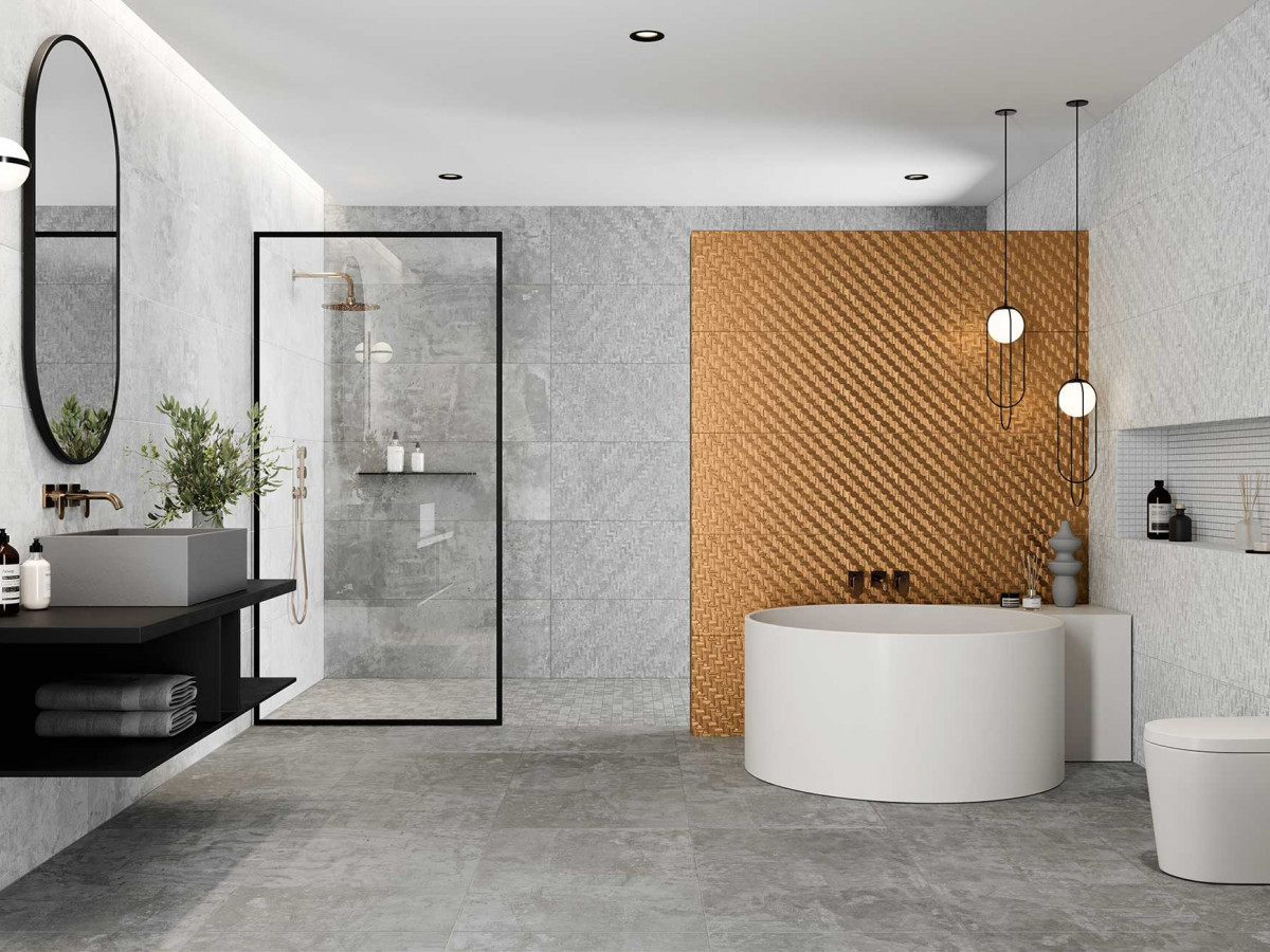 Los azulejos dorados de Aparici combinan su carácter refinado y expresivo con las excelentes prestaciones técnicas del porcelánico. Son baldosas que destacan por su aspecto lujoso y que aportan personalidad a todo tipo de estancias y tanto en proyectos residenciales como de arquitectura comercial.