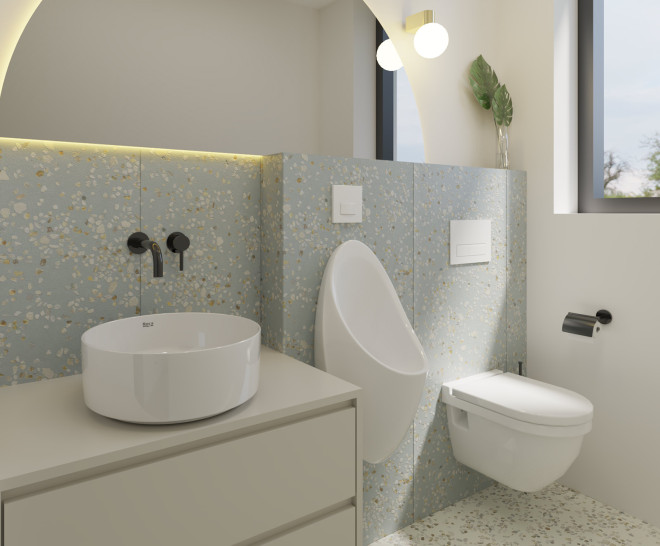 Cuando hablamos de terrazo moderno nos referimos a los materiales que son capaces de simular el diseño tan característico del terrazo tradicional, un pavimento pétreo formado por trozos de mármol o piedra y cemento coloreado. Hoy en día existen diferentes materiales capaces de recrear la estética inconfundible del terrazo, como los vinilos o diferentes superficies adhesivas. No obstante, entre los pavimentos actuales que consiguen ese efecto renovado, los azulejos porcelánicos efecto terrazo son, con diferencia, los más utilizados.