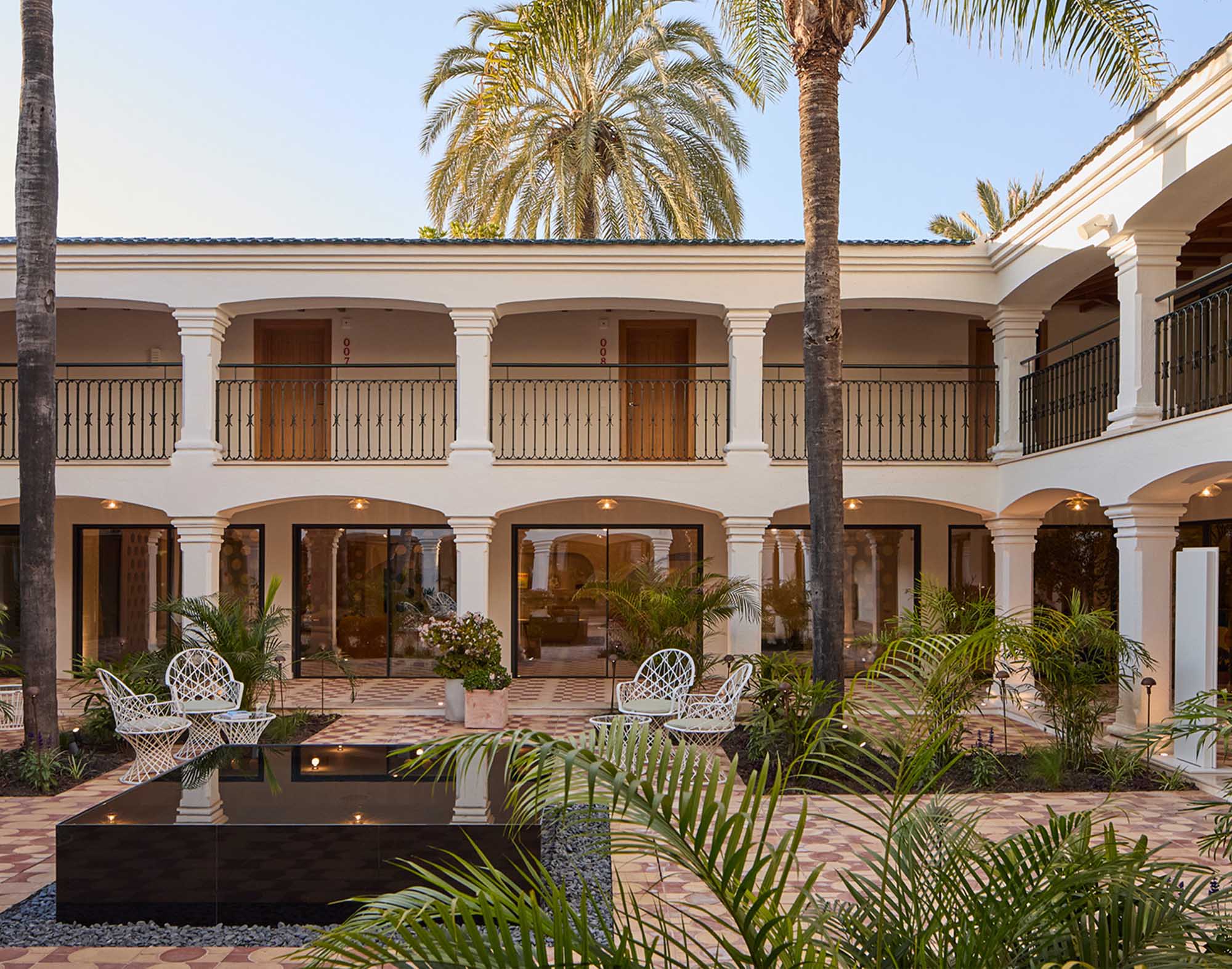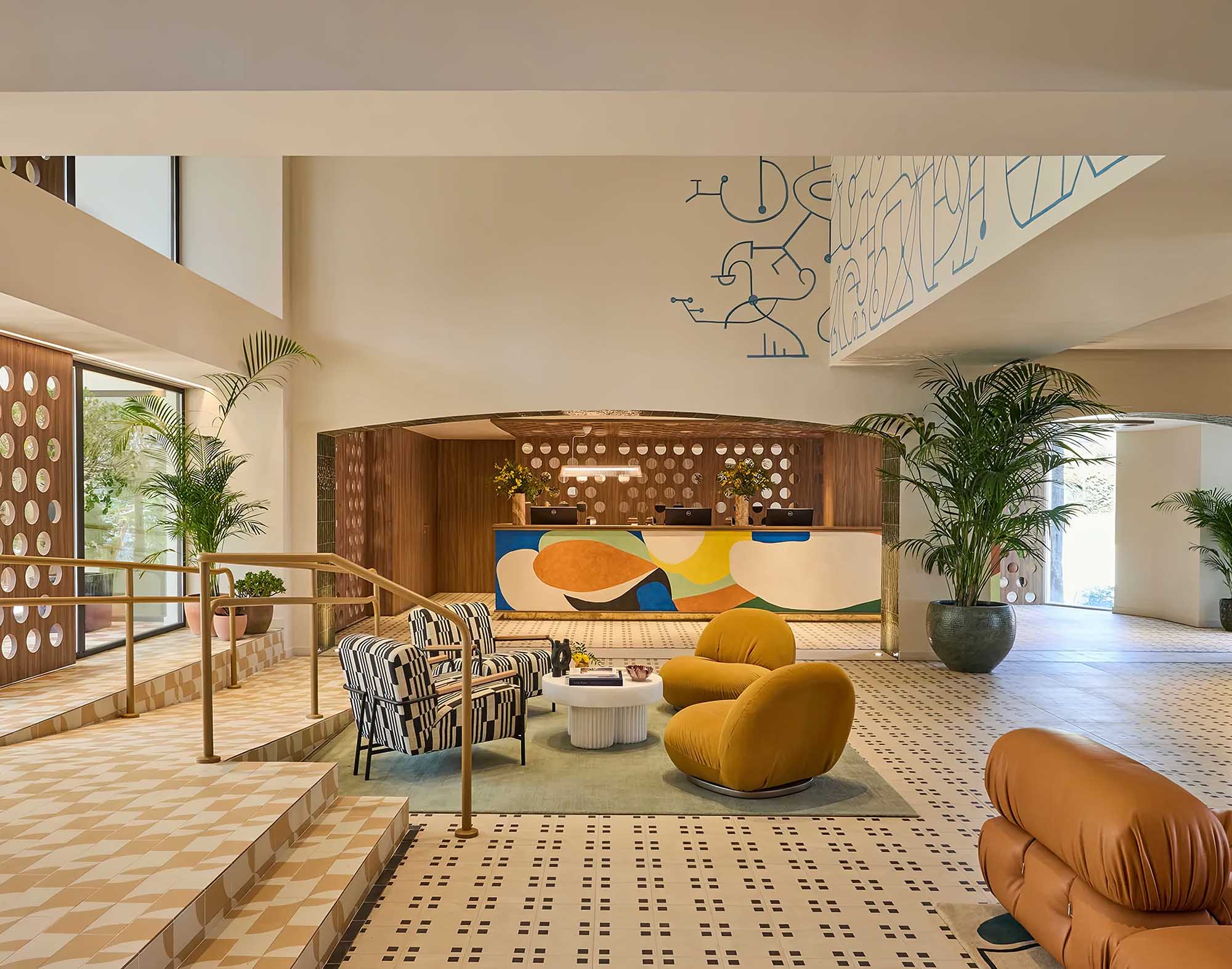 El proyecto del Kimpton Los Monteros se inspira en la Marbella de los años 60 y 70, un período marcado por el glamour, la vida social sofisticada y la influencia del arte moderno español. El estudio El Equipo Creativo traduce esta esencia en el interior del hotel mediante una combinación de formas curvas, celosías geométricas, mobiliario de maderas naturales y piezas escultóricas. La luz mediterránea, la vegetación exuberante y la presencia de murales inspirados en Picasso completan la experiencia, creando un hall que es al mismo tiempo acogedor, artístico y elegante.