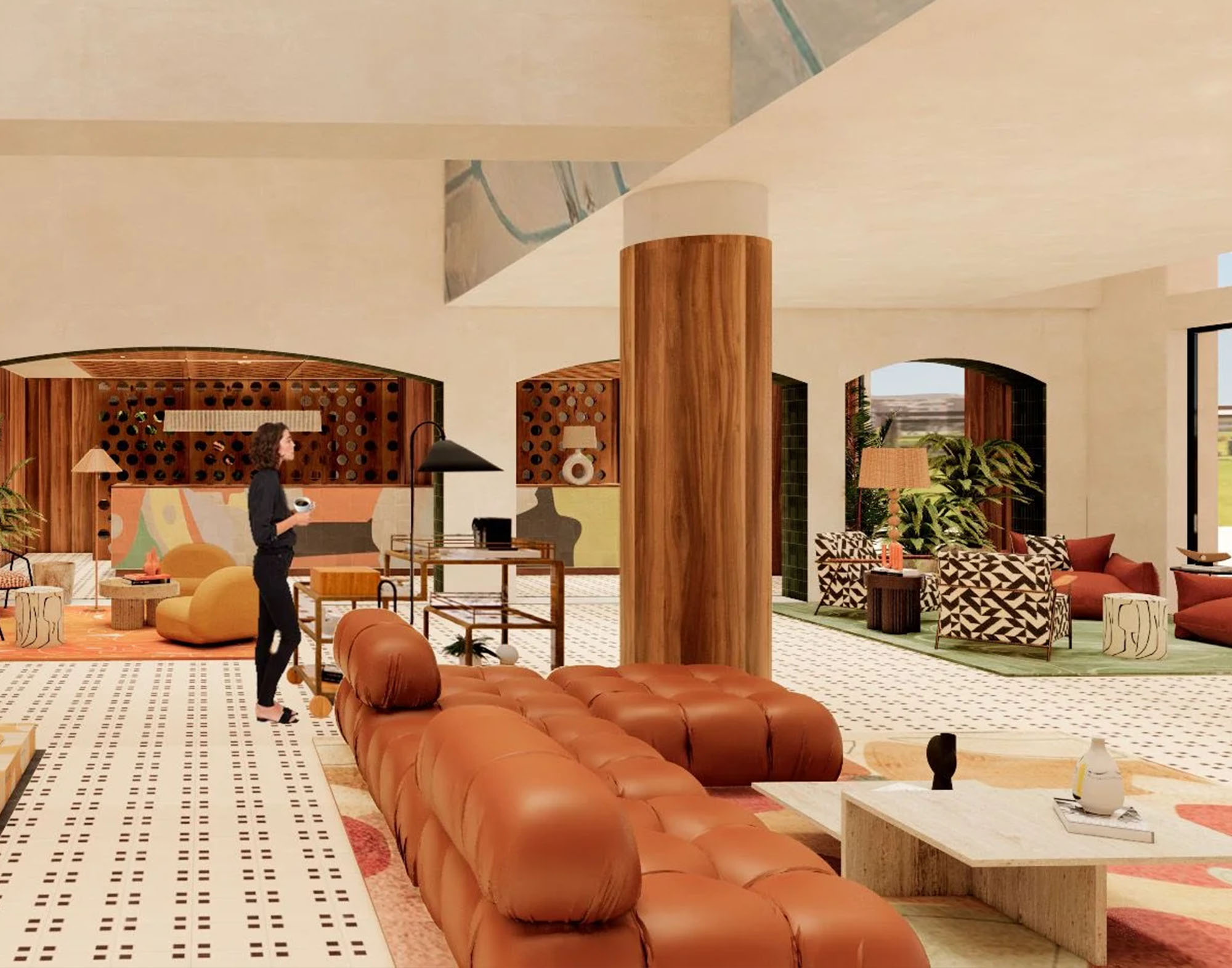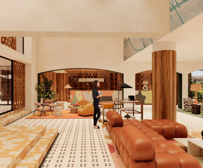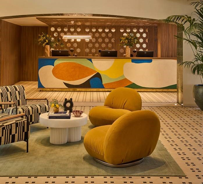 The project includes, in addition to the lobby, other standout spaces such as the Azul Bar, the lounges, and the library, where ’70s-inspired style and a reinterpretation of Andalusian art are present throughout. Every detail is designed to convey Marbella’s history and identity from a fresh, contemporary perspective.