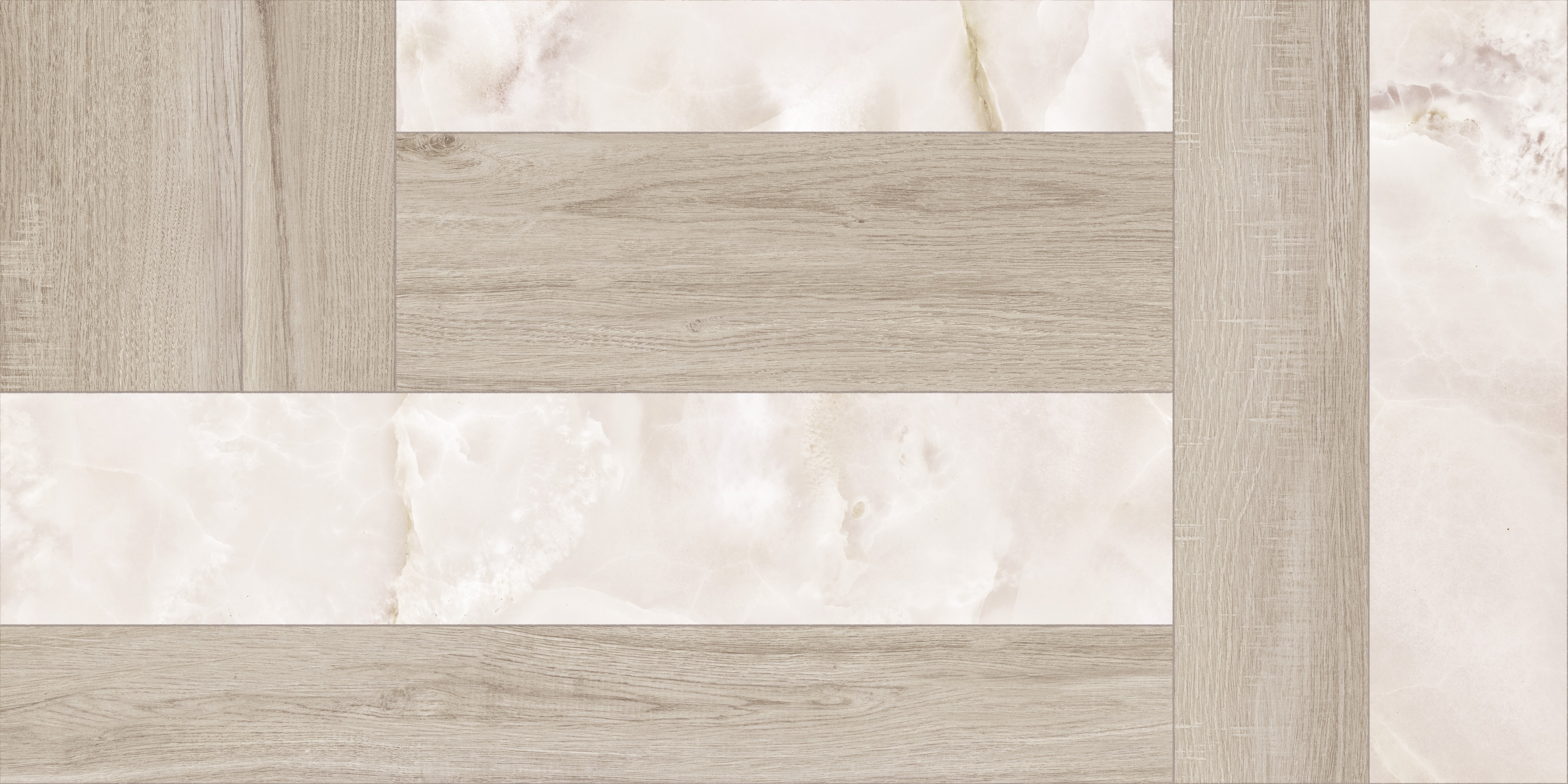 Ibiza Wood: An interpretation that combines the nobility of white marble with the warmth of dark wood, creating a sophisticated and contemporary contrast. The design alternates strips of marble and wood with realistic veins, evoking artisan-inspired flooring and offering an elegant character that adapts to both modern interiors and more traditional spaces. It has 18 different graphics.
