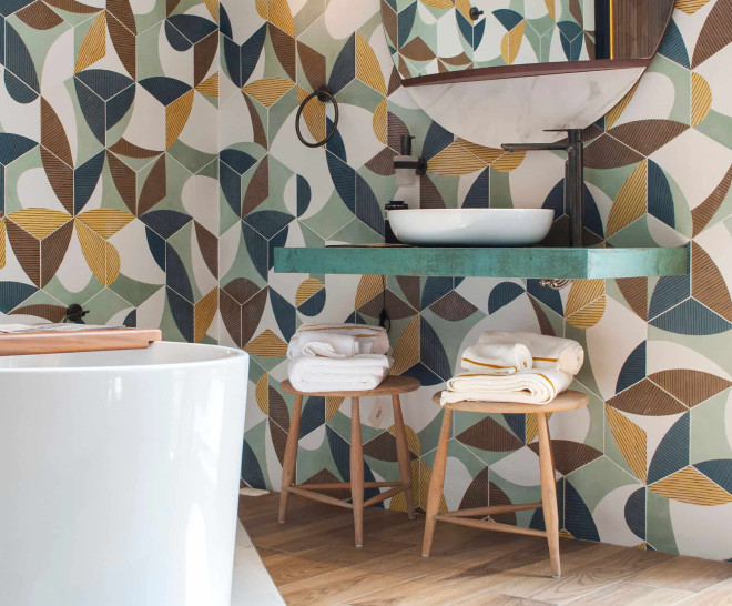 L’utilisation de carreaux hexagonaux est populaire dans des espaces tels que les cuisines et les salles de bains en raison de leur pouvoir décoratif. Ces pièces ajoutent une personnalité supplémentaire et aident à différencier les espaces, comme le mur d'une douche ou le dosseret d'une cuisine. C’est d’ailleurs dans ces espaces que les carreaux hexagonaux démontrent tous les avantages techniques d’un matériau comme la porcelaine.