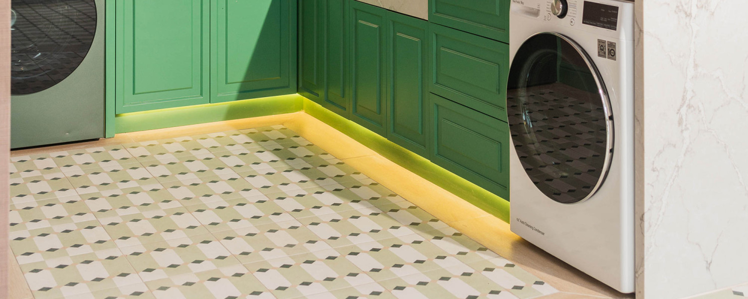 Verde vibrante en CASACOR Perú con azulejos hidráulicos